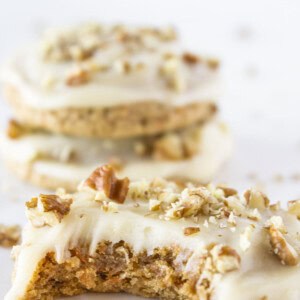 Store- These cookies should be stored in the refrigerator because of the cream cheese frosting. Keep them in a good airtight container, a freezer bag, or wrap tightly in plastic wrap. They will keep for 4-5 days.