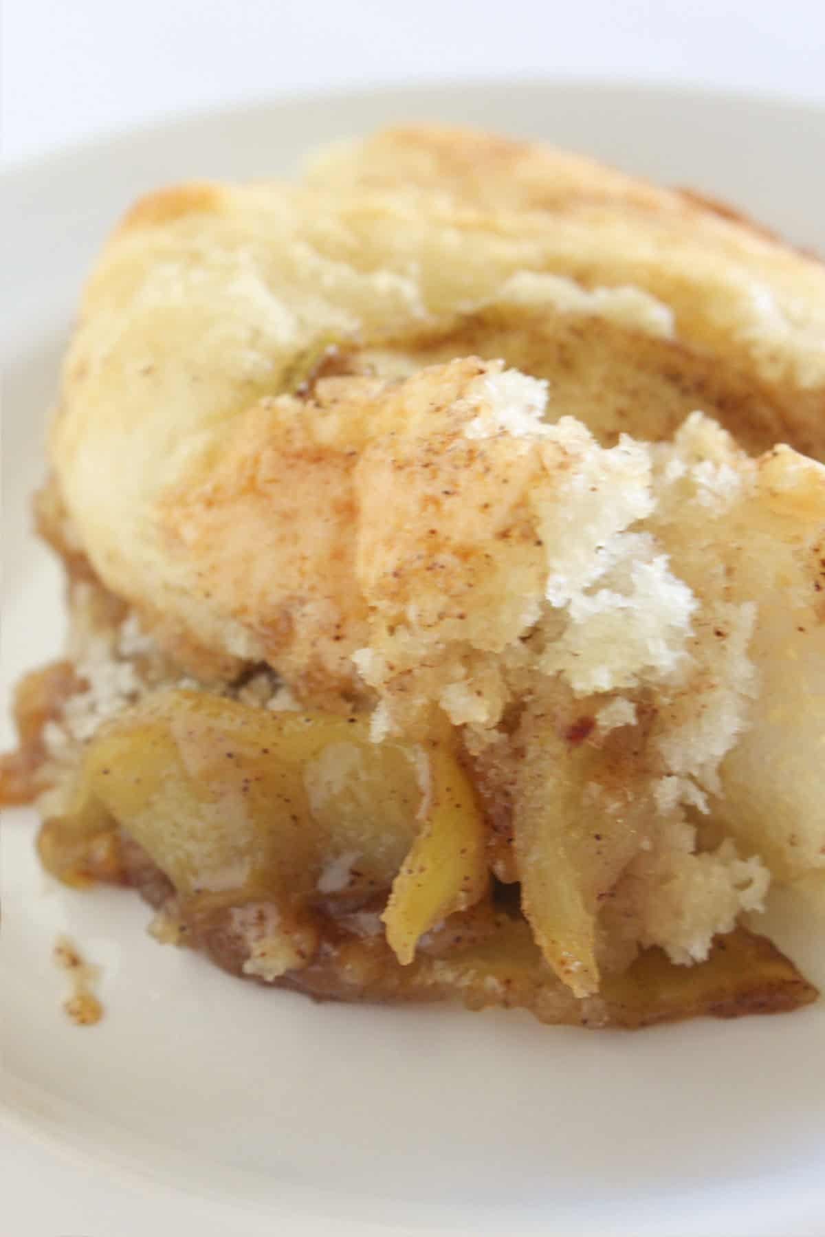 The apples soften up and the brown sugar makes a thickened caramel sauce that is better than any cinnamon roll. Did I mention the delicious cake on top? This is sure to be a new favorite at your house too.