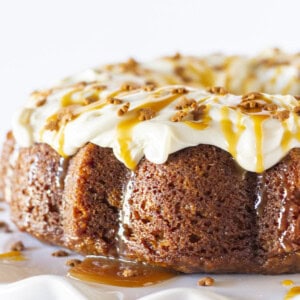 Freeze: You can freeze this gingerbread bundt cake for up to 3 months. Make sure to wrap it tightly without frosting, caramel, and sprinkles. Store it in an airtight container.