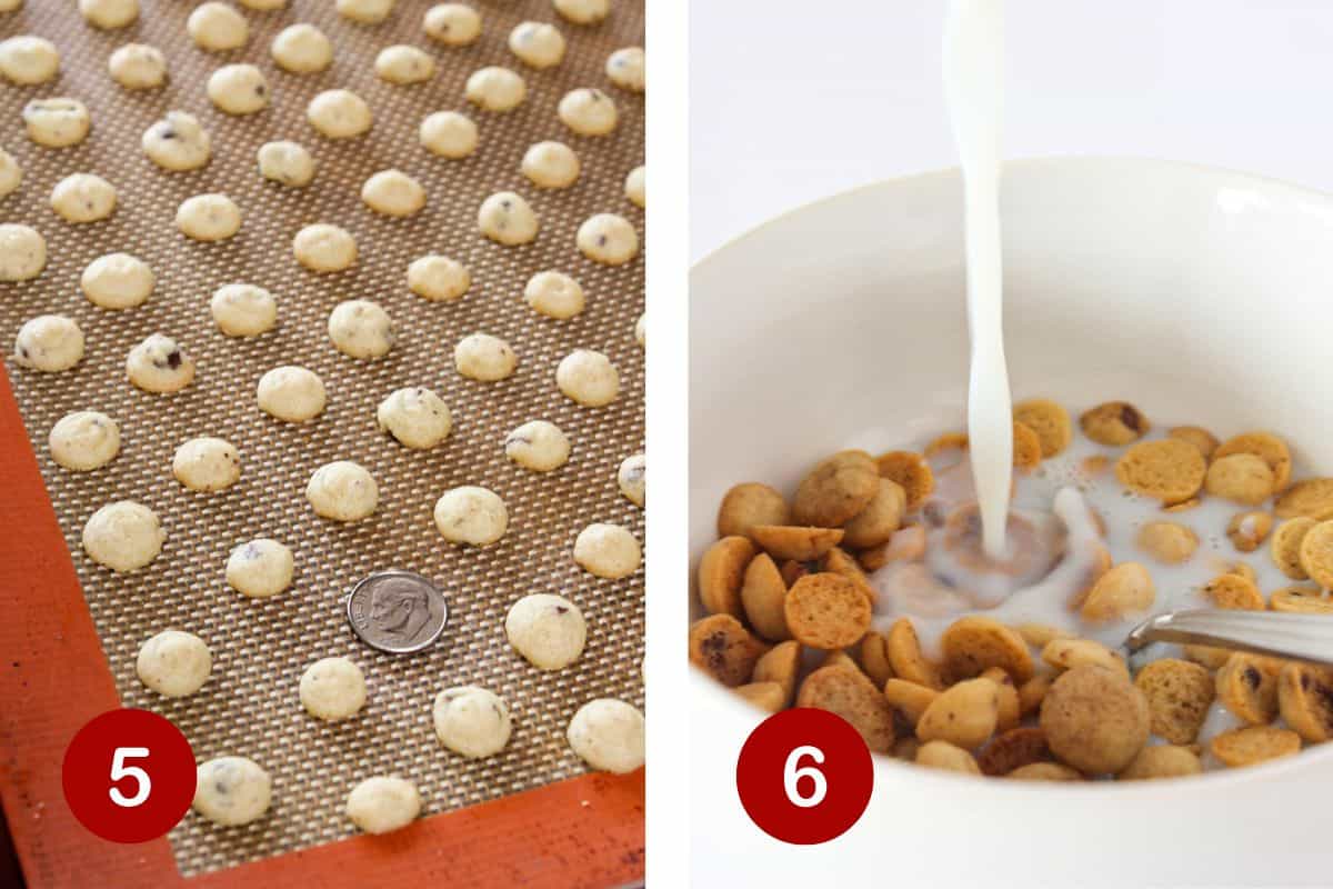 - Pipe the cookies super small. They should be smaller than a dime. Remember they are going to be cereal so they need to be tiny.